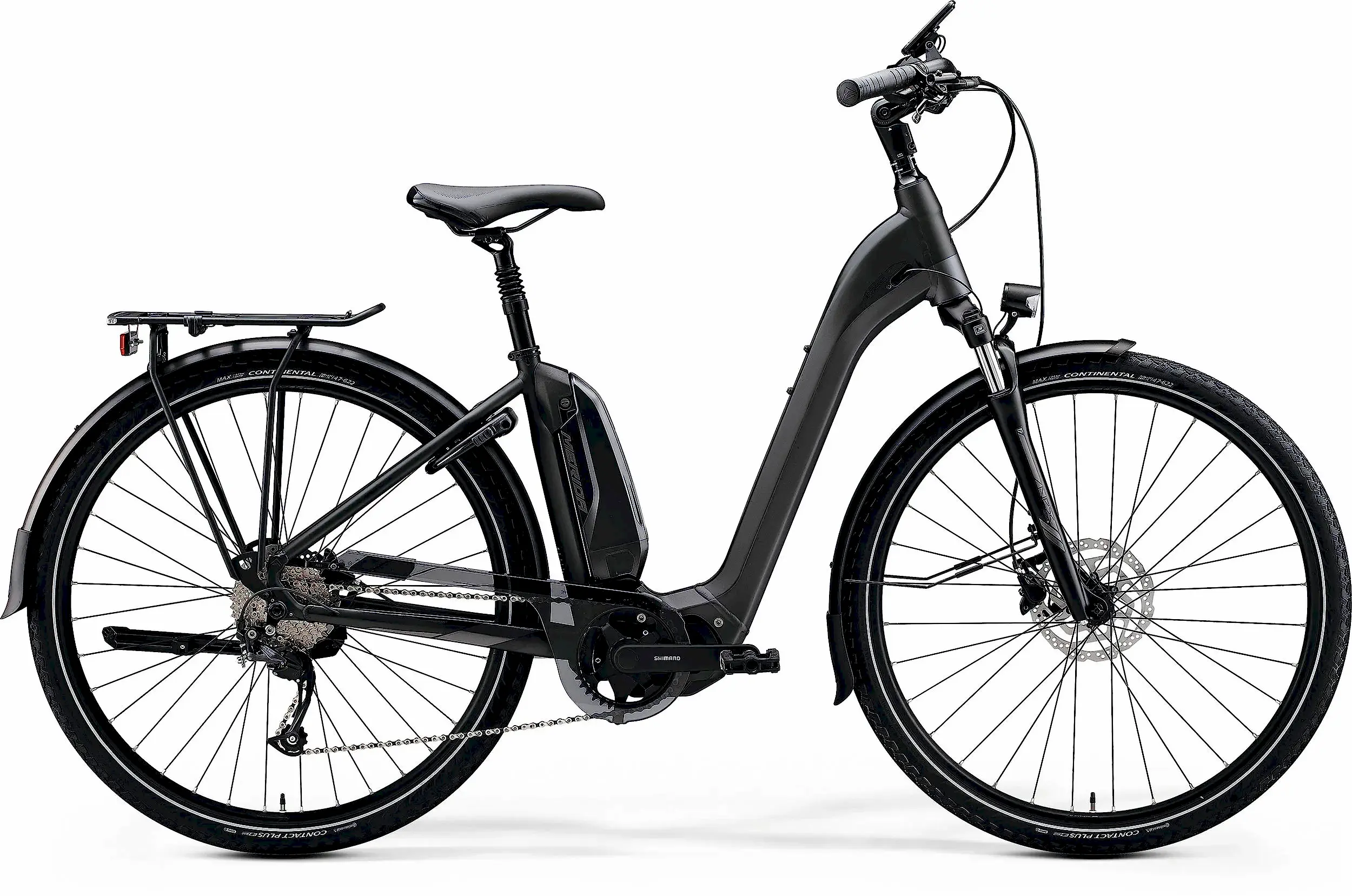 Merida combines German design and engineering with Taiwanese production expertise to create a wide range of high-quality bikes that provide outstanding value for money. The eSPRESSO models are Merida’s city and touring e-bike range. This City 800 EQ model is equipped with the Shimano STEPS 6000 drive unit and features electronic gear shifting through its low-maintenance 8-speed Shimano Alfine hub. This comfortable stepthrough comes with all the practical accessories like mudguards, lights (operated directly off the e-bike battery) and a luggage rack to carry your panniers. The big 500Wh battery lets you ride up to 140km on a single charge.